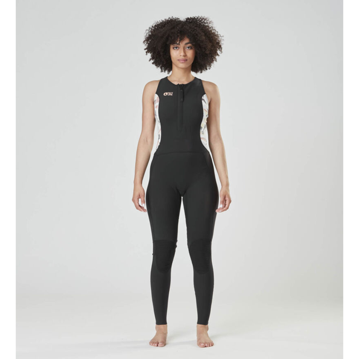 Pictures’ Meta range combines lighter materials and style for versatile wetsuits. Meta wetsuits are made with the latest Eicoprene technology, a non-petroleum based synthetic foam derived from a mix of oyster shell powder, limestone, and recycled tires. To laminate the recycled polyester lining we use Aqua-A™, a solvent-free water-based glue with no harmful chemicals. The Meta LL 2/2 zip-free full-length version is designed for spring and summer sessions. The flatlock seams increase flexibility and freedom of movement. Its fuse cut and drain holes minimise water entry and maximise water draining. The Meta 2/2 also features our Thermal Standard lining to insulate and retain body heat. With its long Jane retro style, our sleeveless wetsuit is ideal for those long summer sessions, one great session after another !