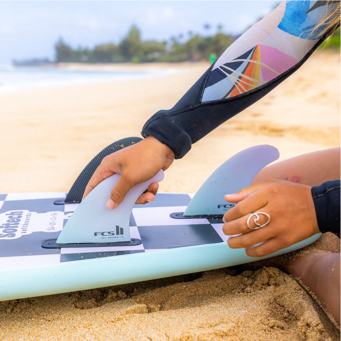 Sky’s signature FCS II fin features a fresh pastel graphic that pairs with her signature T-3 traction pad.