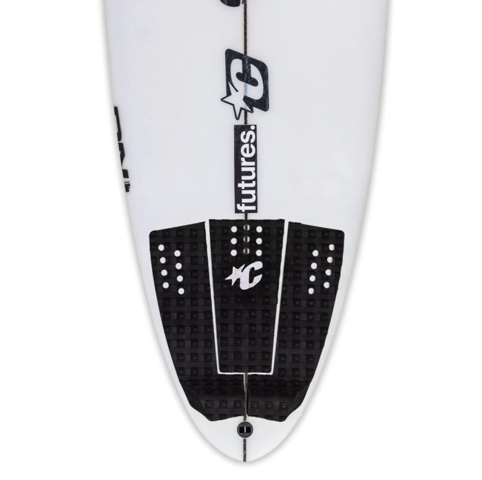 The RELIANCE III PIN TAIL designed for step-up surfboards with this streamline Pin Tail. The large kick and Square Loc II traction increases grip to lock in foot.