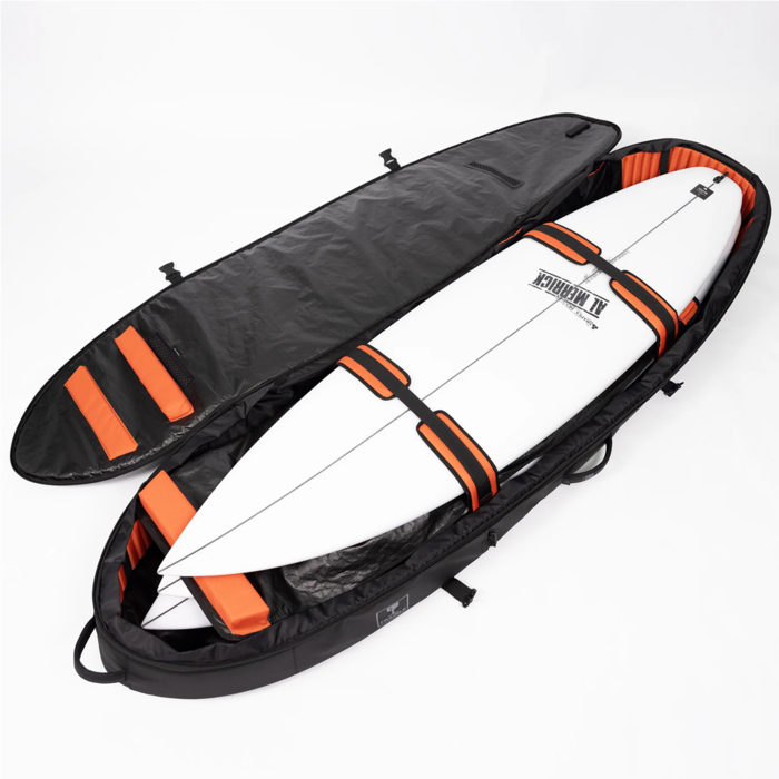 Designed for a wider fit, carrying 2 fish and or shortboards this "patent applied " travel cover comes with the XPS and IPS protection systems, giving your boards unprecedented protection. Combined with a contoured rail gusset, anti shock shoulder, aircon vent system and external compression straps this cover will protect your boards so you can hit the waves with total peace of mind.