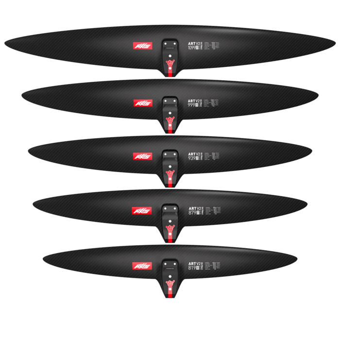 The AXIS ART v2 is a brand-new foil series that sits between the AXIS Spitfire and ART PRO wing ranges, offering the perfect blend of the Spitfire’s powerful smooth carving, and the ART PRO’s low-drag glide and speed. The ART v2 is a High Aspect wing sporting an Aspect Ratio of ~10 across the series, fitting perfectly between the Spitfire (average 7.5 AR) and the ART PRO (12+ AR).