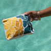 This versatile pouch will keep your belongings safe from spills and splashes at the beach or pool and your everyday essentials organised. It's perfectly "suited" for use as a wet bikini bag, or carry one as a cute clutch for a night on the town!