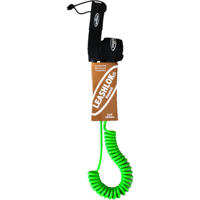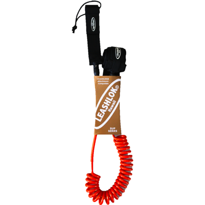 LEASHLOK SUP COIL SERIES Leashes are 8mm they are available in 10’. All are solid in color and come with a full 2” pressure relief ankle or calf cuff, double SS swivels, enclosed key pocket and a large release tab! They are made with the highest quality materials and put to the highest possible test in Hawaiian surf. These products are made to assist your surfing activities and not to be confused with the experience needed to deal with different ocean conditions or as a substitute for your abilities. Please remember to replace your Attachments and Leashes yearly to avoid breakage.