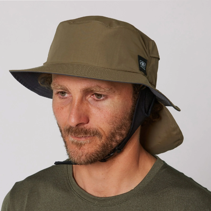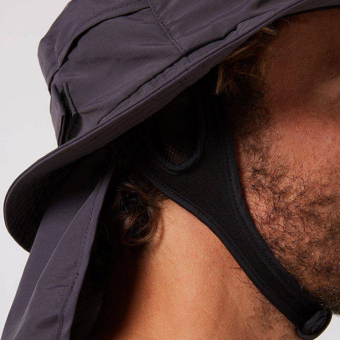 Stay sun-safe with the Mens Indo Stiff Peak Surf Hat. The stiff brim can be flipped up when paddling and keeps vision clear. Detachable legionnaire flap provides extra sun protection. Lightweight in its construction, this hat will keep you comfortable, protected and out in the surf for longer.