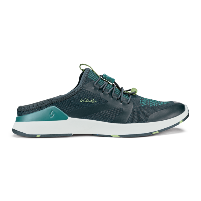 Olukai patented Drop-In Heel® design offers both a shoe and slide functionality, welded and embossed upper logos, no sew construction for comfort and lace toggle for easy on/off function.