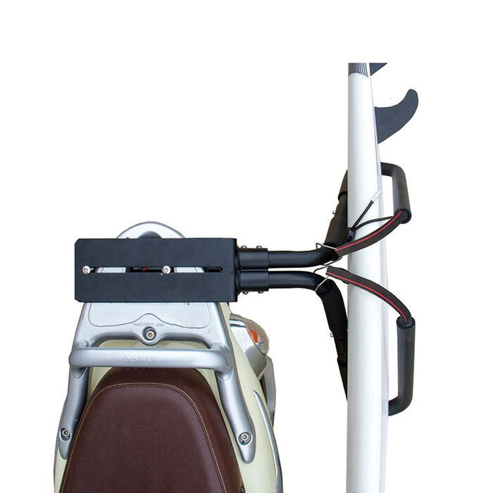 Looking to transport a surfboard on your scooter, moped or motorbike? The Moped surfboard rack is for you! Constructed from an anodised rust resistant aluminium frame with soft padded EVA foam to protect your board, this surfboard rack fits 1 board. Protect and transport your board in style with easy assembly.